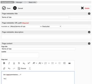 In the « URL path » field, why I choose something like « /About/terms-of-use »? Because I would like a menu « About » with drop-down list toward site pages, like for the « Browse » menu.